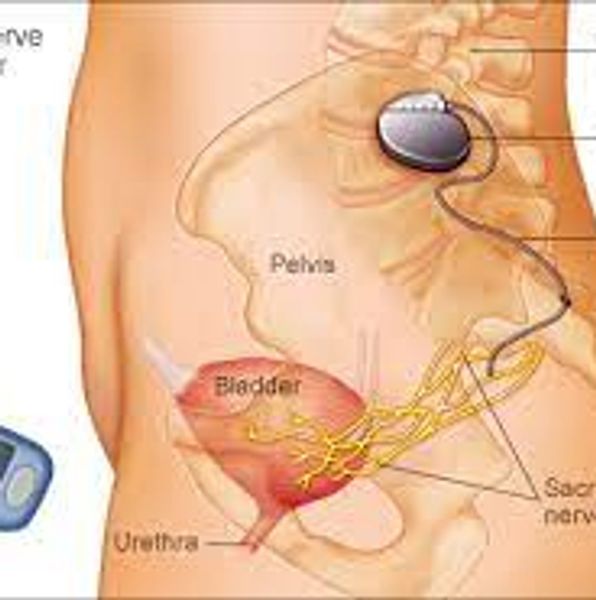 The Interstim system restores bladder function by stimulating the sacral nerves. It involves placement of a small lead to the nerves in the sacrum that control the bladder. This is connected to an MRI safe battery device placed under the skin which can be controlled with an external device to retrain the bladder-brain communication pathways.